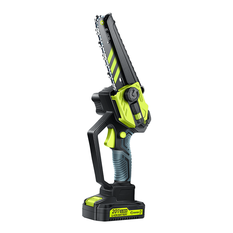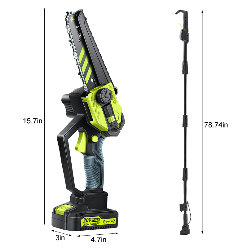 Ergonomic Design: Designed for comfort and reduced fatigue during extended use,Saker pole chainsaw featuring a rubber handle and ergonomic design. Saker cordless pole saw is user-friendly for seniors and women. The double-locking safety mechanism ensures peace of mind during operation.