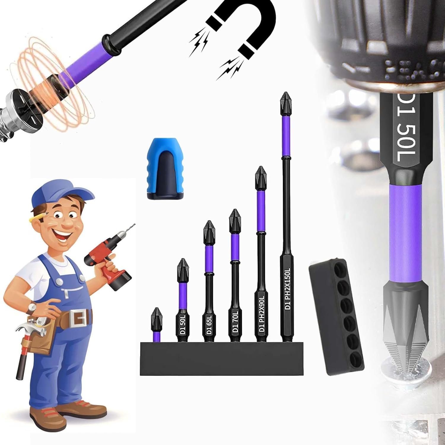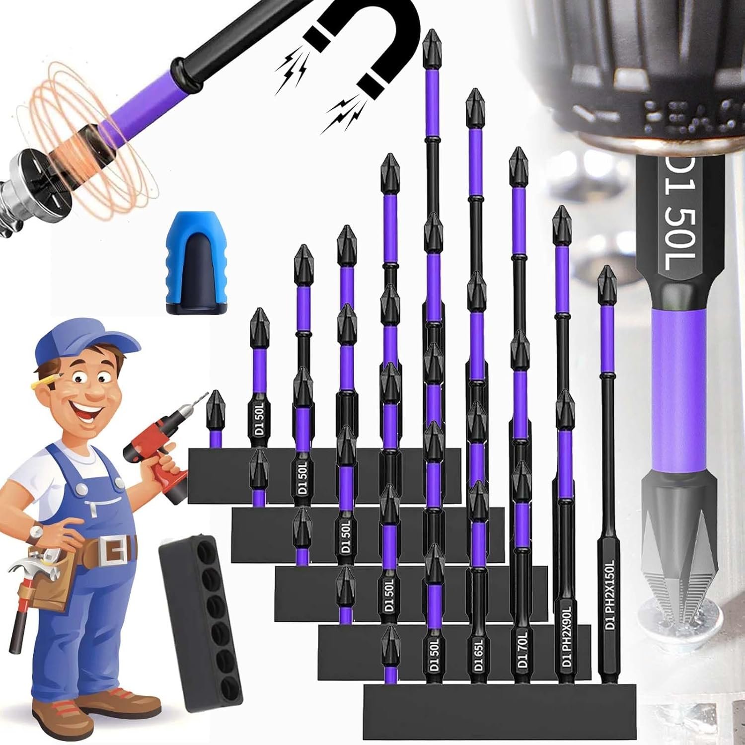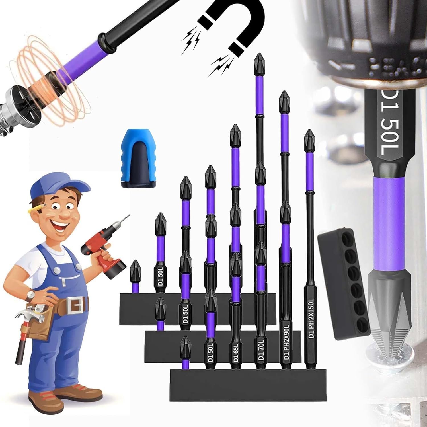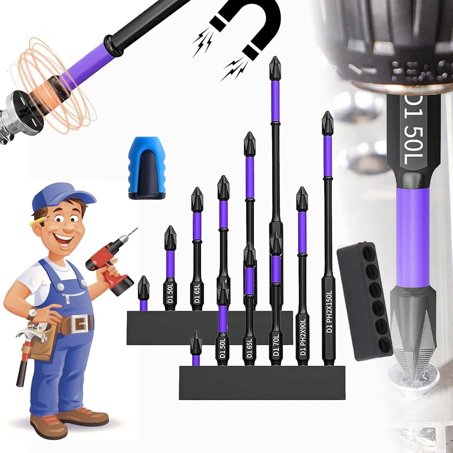 Revolutionize the way you work with our magnetic screwdriver bit set. Upgraded High Hardness and Strong Magnetic Bit is built for high-impact high_strength screwdriving. Suitable for screwdrivers, especially impact drivers.Experience increased productivity as you effortlessly complete tasks faster with most electric screwdrivers and drills.