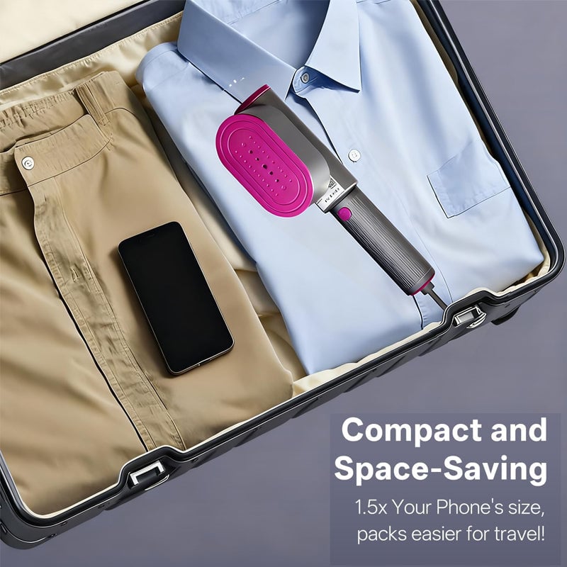 2-in-1: Switch freely between dry ironing for crisp results and steam mode for gentle care. The dual-function design handles both hanging and flat garments, making it ideal for shirts, dresses, and delicate fabrics on the go.